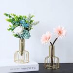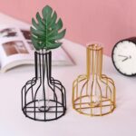 Minimalist Tabletop Modern Hydroponic Metal Frame Tube Vase – perfect for displaying real or artificial plants. Size: 6″ height × 4″ width. Ideal for tabletops, shelves, or office desks.