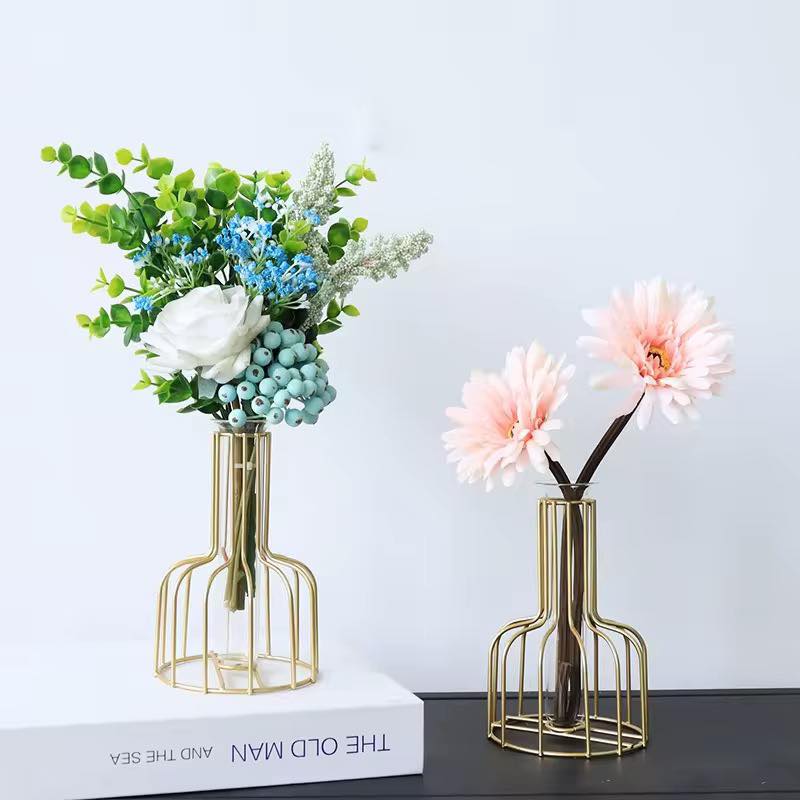Tabletop Modern Hydroponic Metal Frame Tube Vase –টেবিলটপ হোমডেকর ও গাছ রাখার জন্য স্টাইলিশ মিনিমাল ফুলদানি